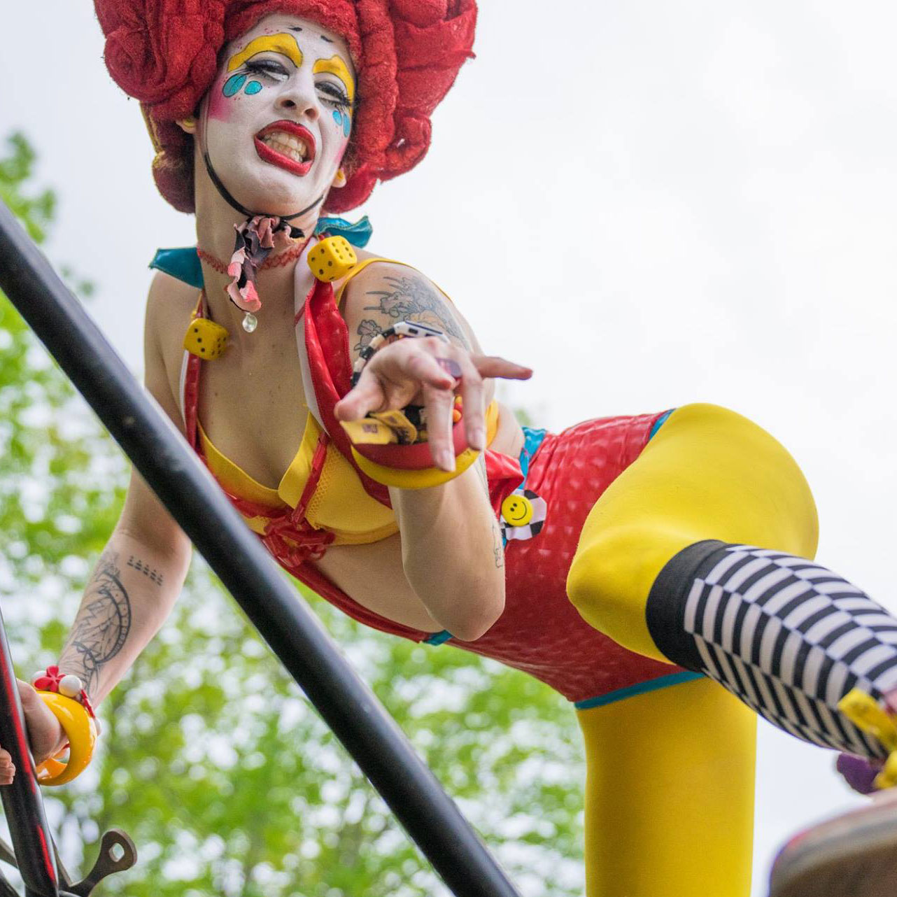 Allegra Meshuggah is a self described neo-clown-costumed-cabaret-drag-comedy-artist who has been working as the East Coast Lead and Creative Director of Fou York (Fou Fou Ha NYC) since its inception, for the last three years. A seven year veteran of Fou Fou Ha! she strives to retain the vision of the original troupe while adding her own extreme pop art spin to it. A lifelong performer, she has a background in dance, theater, and music and has been delighted to step into directing to bring Fou York forward to national and international acclaim. When not clowning, she works as costume director and is a resident performer at the House of Yes, and works across the city in various nightlife venues as an ambient performer.
